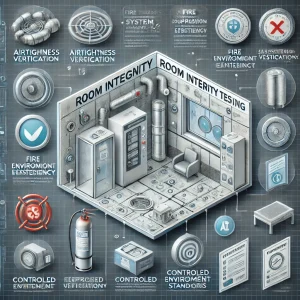 Ensures airtightness of protected spaces for fire suppression and controlled environments, verifying compliance with safety and efficiency standards.